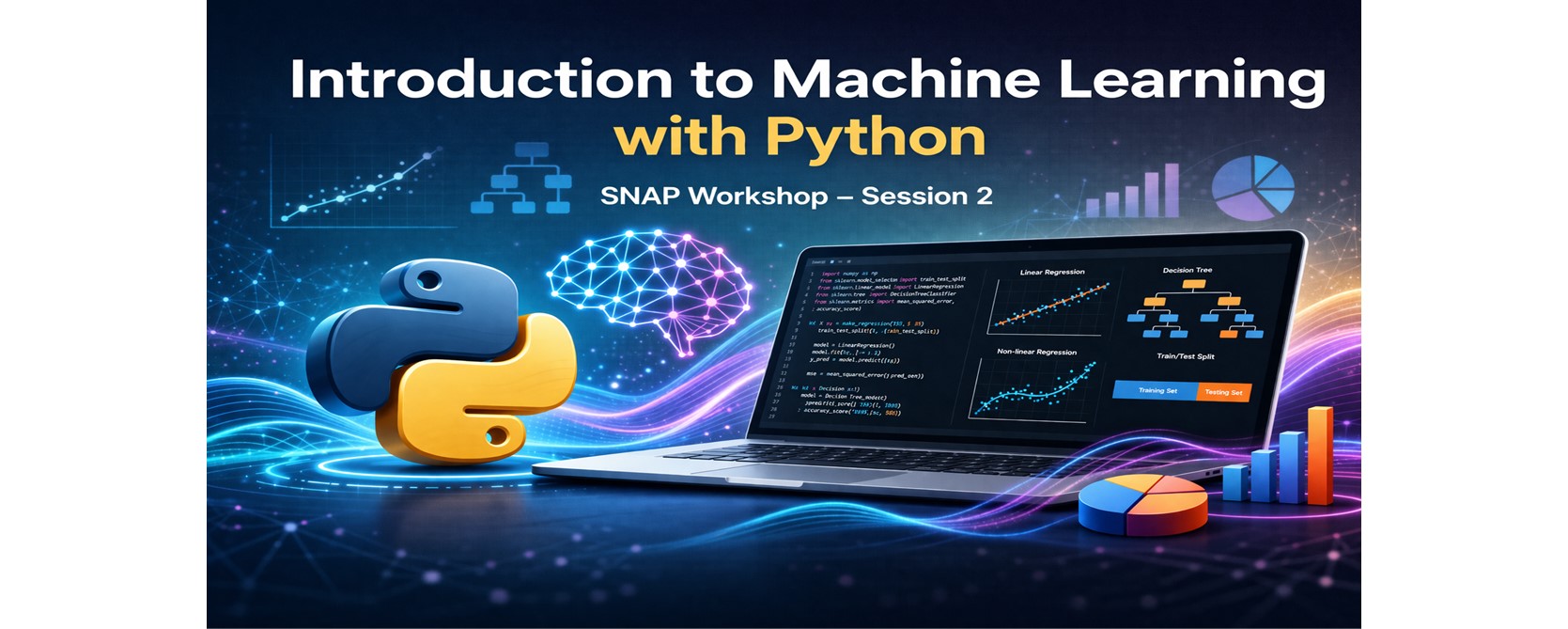 SNAP hosted the second session of the “Introduction to Python and Machine Learning” workshop series on 19 March 2026. This session was led by Dr. Emily O’Riordan, a lecturer in Artificial Intelligence and Machine Learning at the School of Engineering and Computer Science, with support from Angela Xue and Richard Littauer. The workshop offered a practical introduction to machine learning concepts using the Python library Scikit-learn. Participants examined techniques such as linear and non-linear regression, decision trees, and methods for dividing data into training and testing sets. Through guided examples, attendees discovered how machine learning models can be trained and assessed within a Python workflow. The session was attended by more than a dozen students from diverse academic backgrounds, including computer science, linguistics, and other fields interested in developing computational research skills. Along with the initial session, the workshop series provided a comprehensive eight-hour introduction to Python programming and machine learning, enabling participants to delve deeper into these topics than in typical short workshops. The session loosely followed the Carpentries lesson Introduction to Machine Learning with Scikit-learn, which participants can further explore on their own.